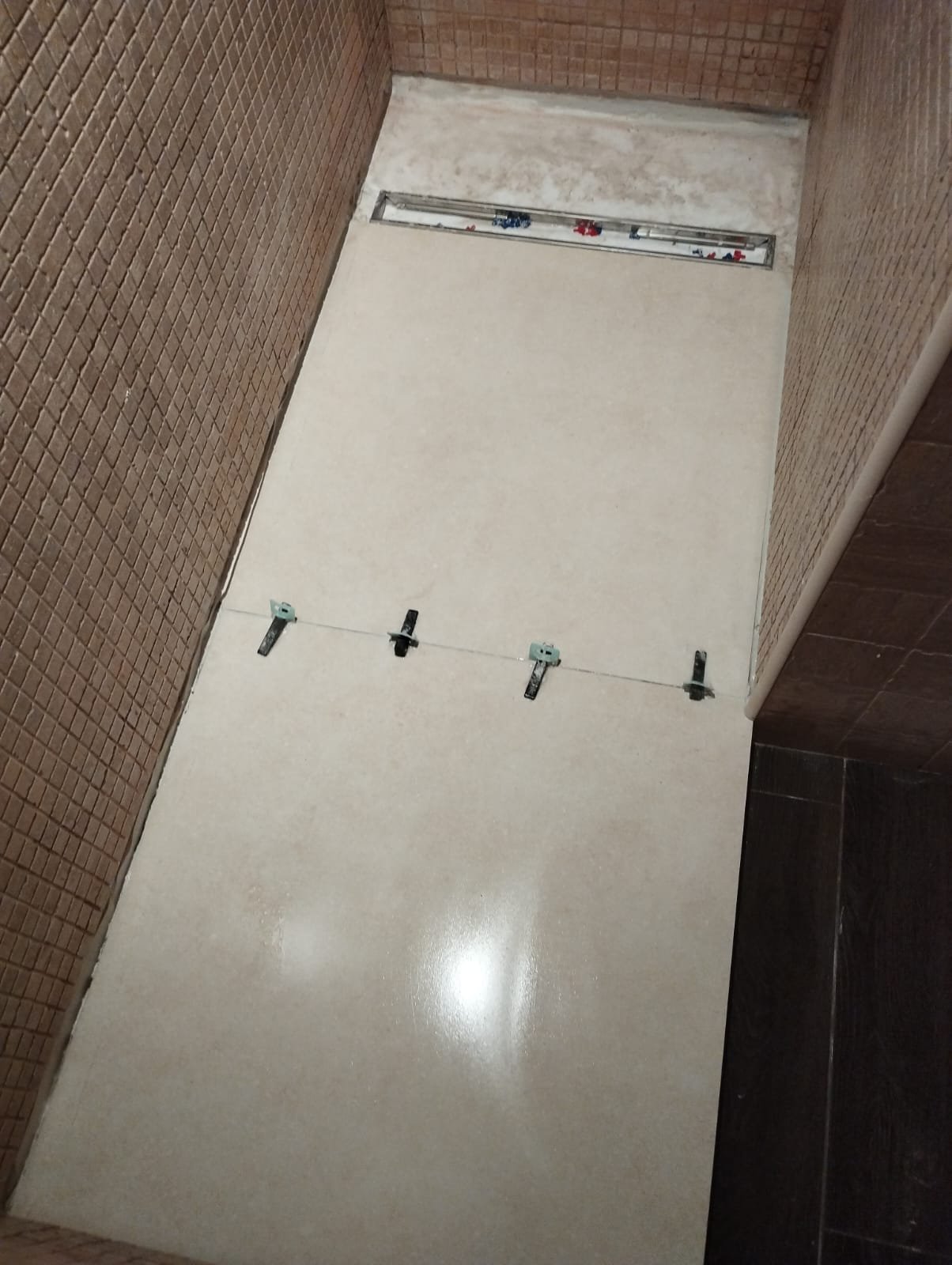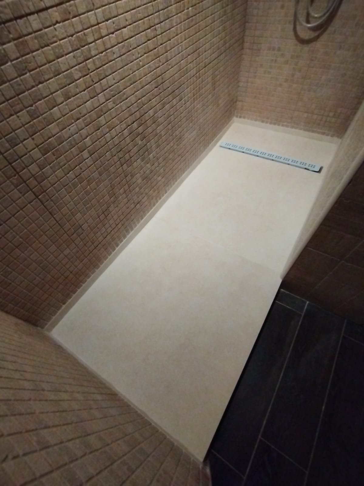 Proyecto de reforma de placa de ducha en Córdoba. La elección cuidadosa de los revestimientos resalta la belleza del suelo de la ducha, creando un ambiente renovado y estilizado.